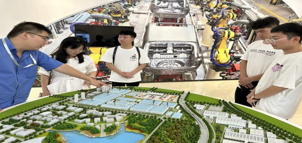 座谈结束后,吴经理带领调研小队参观企业,介绍企业文化,了解企业发展经历,讲解企业分布图和企业即将发布的新车型以及新研发的概念车型。