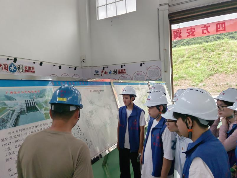7月9日上午,全体队员前往落久水利枢纽进行参观,了解当地水文。据了解,广西落久水利枢纽是一座以防洪为主,兼顾灌溉、供水、发电和航运等任务的综合性水利枢纽。该项目被列入国务院确定的172项节水供水重大水利工程。落久水利枢纽位于融水苗族自治县境内的融江支流贝江的下游,由拦河主坝和榄口副坝组成。供水对象为融水苗族自治县县城建成区及四荣乡、融水镇等周边乡镇农村。项目负责人向大家介绍落久水利枢纽从规划到现在建成发挥效益的发展历程,带领大家参观落久水利枢纽自动化控制室、厂房等场所,实践队员详细了解落久水利枢纽自动化、信息化操作的过程。大家直观感受落久水利的建设现状,为柳州市水利事业近年来取得的成就感到欢欣鼓舞,对水利事业的发展未来充满信心。