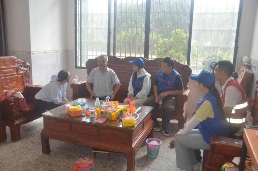7月8日上午,促进团成员分为三组,分别开展慰问困难群众及老党员行动。在困难群众家中,我们看到的是艰辛的生活,但大家对生活和未来怀抱的希望深深感染了同学们。实践队员们和困难群众拉家常、打油茶,进一步拉近了学生与当地村民的心理距离。在老党员家中,实践队员聆听老党员心声,听着老党员们讲述他们的青春奋斗故事,这是年轻党员与老党员之间的心灵交流,有利于促进学生党员强化自身的党员身份,在新时代中更好地挺膺担当。