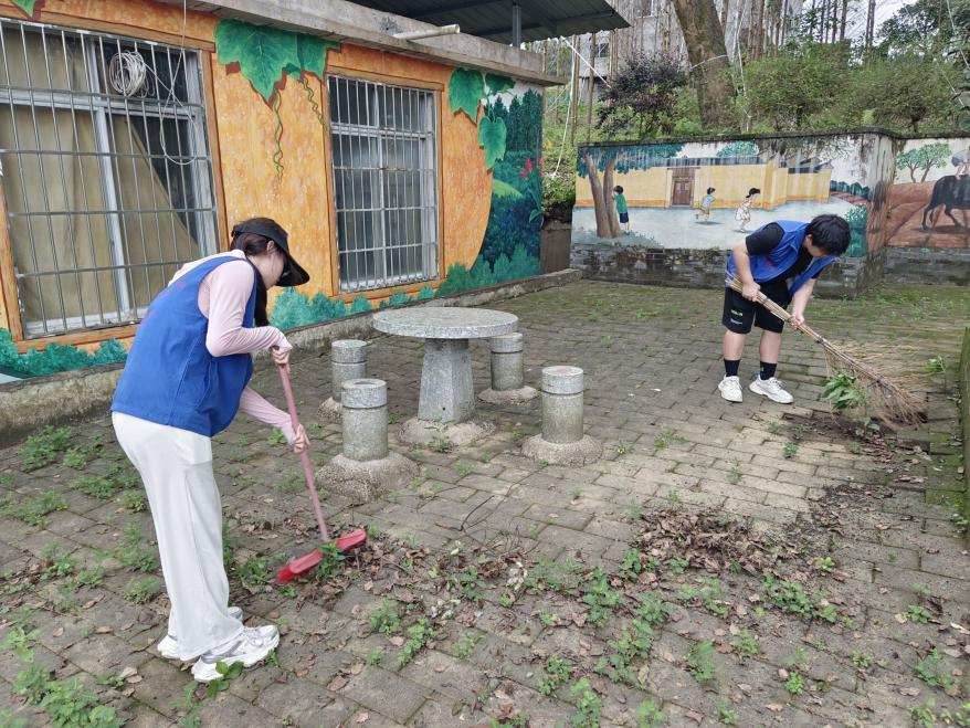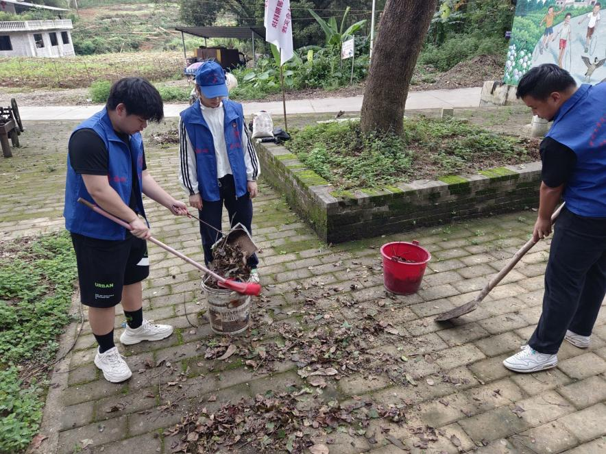 7月6日上午,全体实践队员前往长赖屯开展清理杂草垃圾的志愿服务活动。大家热情高涨,分工明确,将阶梯广场划分为三大区域,有的拿扫把清扫落叶,有的用铁铲清理淤泥,有的用桶来装垃圾。通过大家的共同努力,村貌焕然一新,环境得到明显提升。