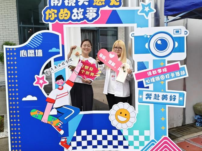 “用镜头‘愈’见你的故事”活动一经推出,便吸引众多学生参与。主题相框前,同学们创意满满,与好友并肩定格笑容。无论是校园风景作伴,还是单纯记录青春面庞,每一张照片都成为压力释放的出口,更将美好瞬间转化为心灵“充电站”。