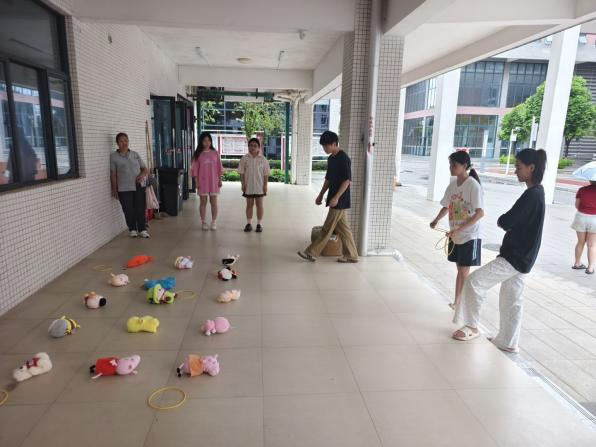 情绪飞镖大转盘前,同学们瞄准“焦虑”“疲惫”负面情绪标签投掷,飞镖命中的瞬间,仿佛把压力狠狠“击碎”;圈住快乐套圈区,专注瞄准、抛出套圈,套中“小确幸”的欢呼里,紧张感悄然消散;故事换花环节温馨又治愈,分享备考小烦恼、成长小感悟,用故事交换花朵,在倾听与共情中,孤独与压力被温柔化解,心灵因联结而充盈力量。