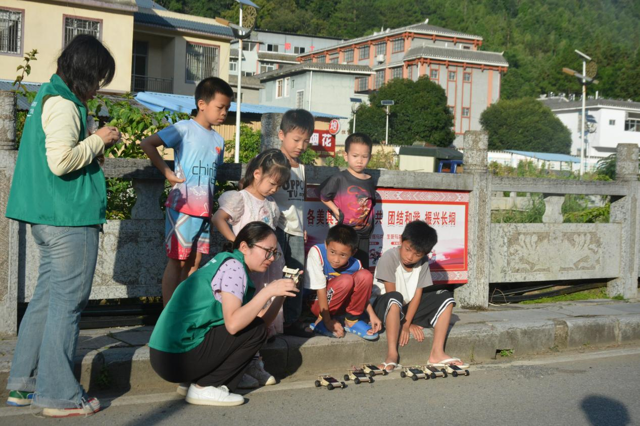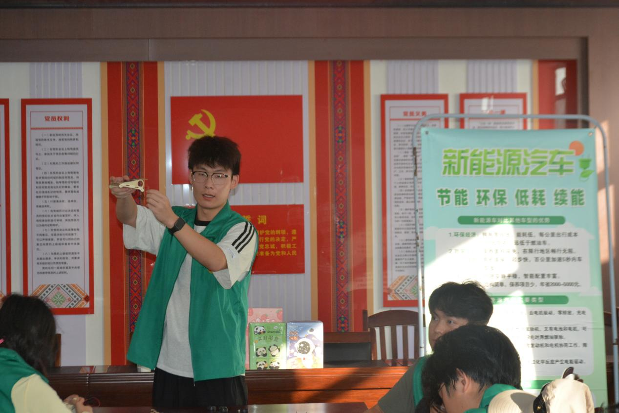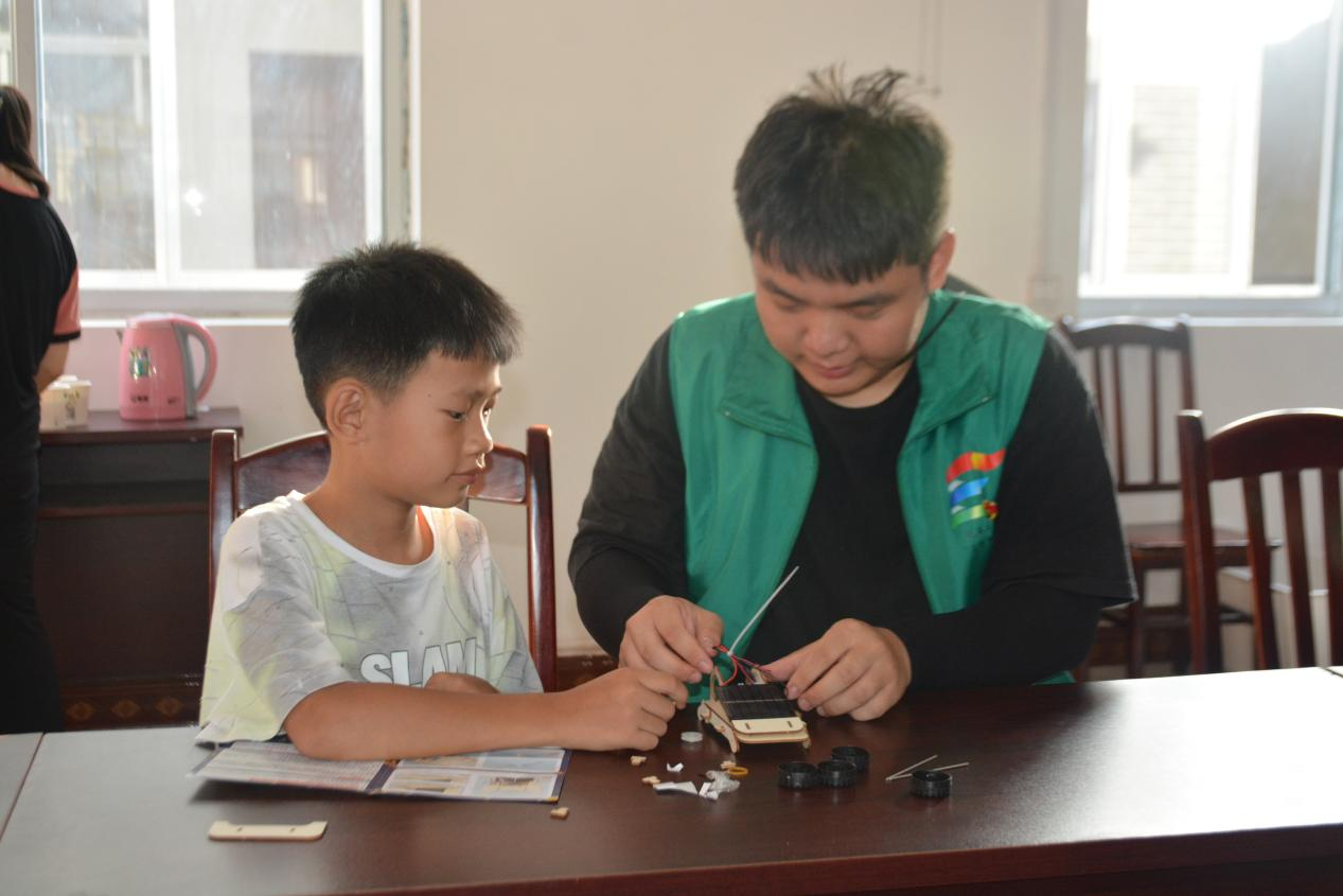理论融入实践,孕育绿色萌芽。一场生动的儿童科普课堂在长峒村活动室举行。课堂以“制作太阳能小车”为主题,实践团成员担任科普老师,用浅显易懂的语言讲解太阳能发电原理和汽车构造知识。从零部件组装到电路连接,同学们耐心指导长峒村的小朋友们动手操作,通过实践激发孩子们对绿色科技的兴趣。