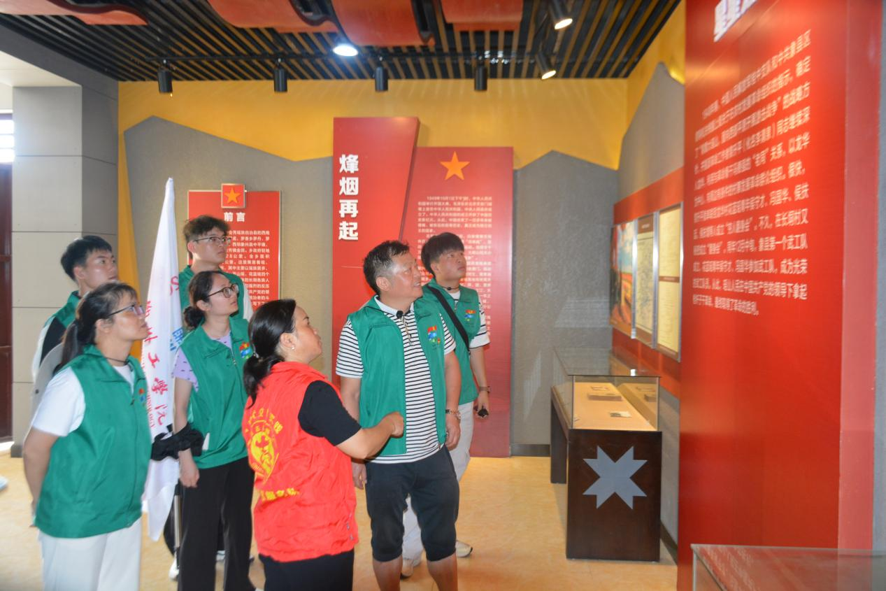 追寻红色足迹,汲取奋进力量。实践团随后参观了龙华红色革命纪念馆。在讲解员的引导下,实践团成员认真参观展厅,聆听革命故事,深入了解长峒乡的红色历程。实践团成员还就红色文化传承、革命精神与新时代绿色发展理念的融合与馆方人员进行了深入交流。革命先辈艰苦奋斗和担当奉献的精神,与当前推进“双碳”目标、实现乡村振兴的时代使命紧密相连,激励着青年学子传承红色基因,勇担绿色发展的时代责任。