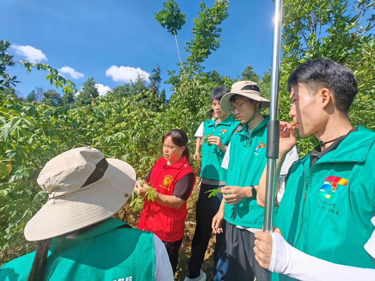 体验绿色产业,感悟振兴智慧。傍晚时分,实践团成员来到生态茶园体验甜茶采摘。山间茶香四溢,生机盎然的茶园正是当地践行“两山”理念的生动写照,生态保护与经济发展在这里实现了和谐统一。成员们亲手采摘茶叶,不仅体验了农事辛劳,更真切感受到乡村在低碳发展与产业振兴之间找到平衡的智慧。