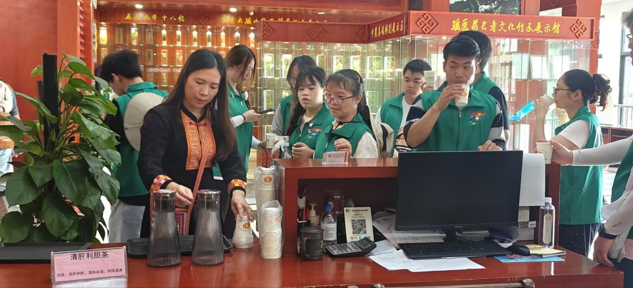 上午,实践团成员秉持“低碳出行”理念,徒步3公里前往金秀瑶医药博物馆,以实际行动践行绿色发展的深刻内涵。在博物馆内,团队深入参观并详细了解了瑶族医药的发展历程。从遵循自然节律的采药法则,到循环利用资源的炮制工艺;从“天人合一”的诊疗哲学,到“治未病”的健康理念,瑶医文化处处彰显着“绿水青山就是金山银山”的生态智慧。随后,实践团成员亲身体验了瑶医把脉。老瑶医运用“望闻问切”技法,精准解读实践团成员的健康状况。其“治未病”的理念与现代低碳生活所倡导的“预防为先”理念不谋而合。
