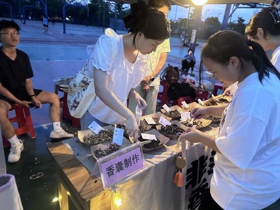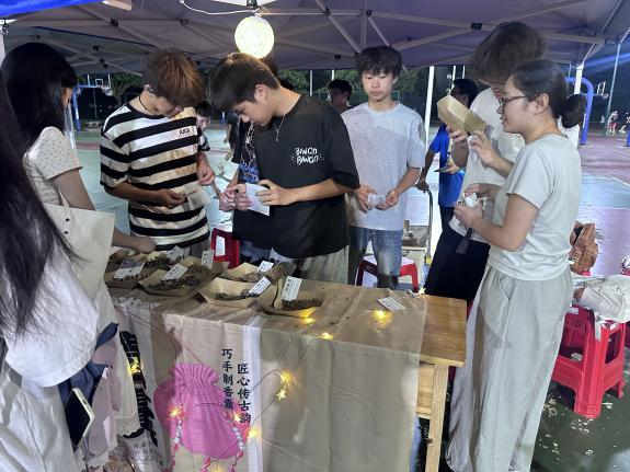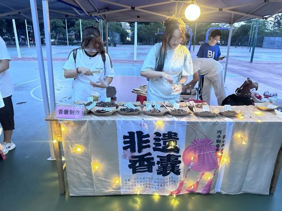 活动以“手作香囊”和“诗词对答”为主线,融文化传承与趣味体验于一体。对诗环节气氛热烈,同学们踊跃参与中秋主题诗词对答,在比拼中重温经典、感悟文化,现场欢声不断,智慧与雅趣交织。香囊制作环节中,同学们精心挑选艾草、桂花、薰衣草等寓意美好的天然香料,制作出独具东方韵味的香囊,将诗意与情意凝结于方寸之间。在猜灯谜、做手作的系列互动中,同学们不仅收获了亲手制作的香囊,更在温馨愉悦的氛围中加深了对传统文化的理解与热爱。