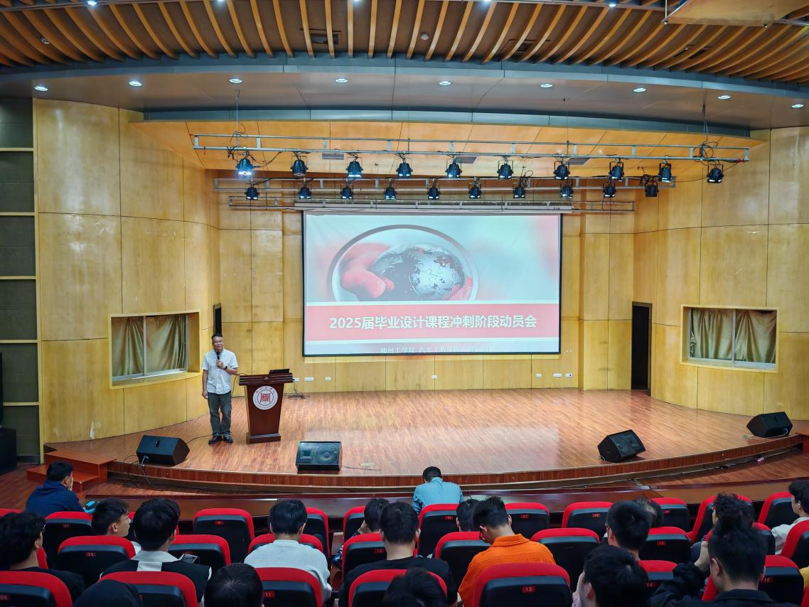 为确保2025届毕业生高质量完成毕业设计,何川老师开启汽车工程学院2025届毕业生毕业设计冲刺动员会,对冲刺阶段重点任务进行了强调和部署。他强调,毕业设计是检验学生综合能力的“最后一公里”,要求全体毕业生严格遵守学术规范,强化过程管理,确保论文原创性和创新性。学院将通过毕业设计管理系统,实施全流程监控,对选题、开题、中期检查等环节进行动态跟踪。此外,何老师对毕业设计的时间节点也作了明确的要求。