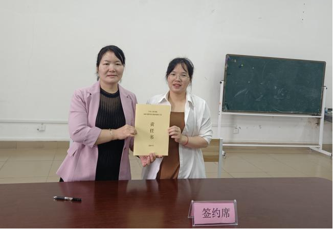 其次,学院领导分别与教研室主任代表、毕设指导教师代表、毕业班班主任代表、辅导员代表签订责任书。