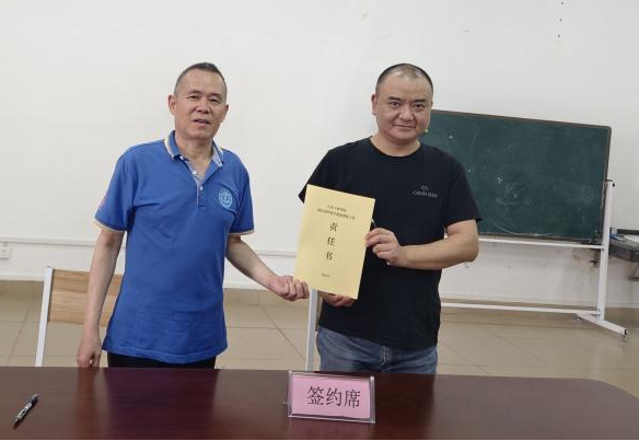 (陈善球副院长与毕业班班主任代表陈春林签订责任书)