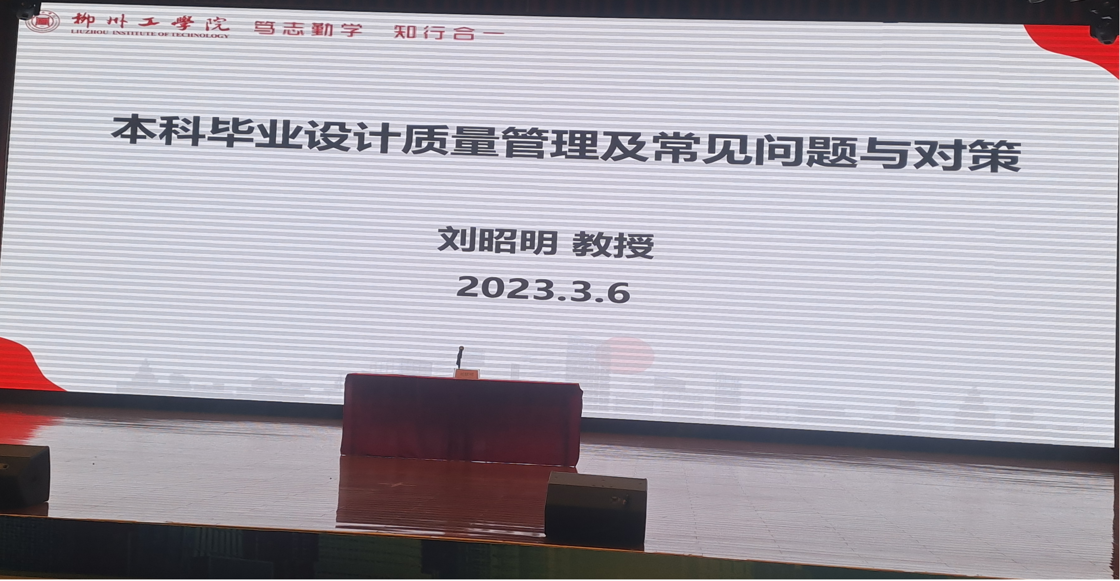 为进一步加强2023届本科毕业设计质量管理,提升本科毕业设计工作质量,2023年3月6日,汽车工程学院邀请广西科技大学教学督导组副组长刘昭明教授在大学生活动中心开展《本科毕业设计质量管理及常见问题与对策》主题讲座,参与本次讲座的有车辆工程、汽车服务工程、交通运输三个专业2023届全体毕业生及所有毕业设计指导老师(包括外聘指导老师),共计600余人。