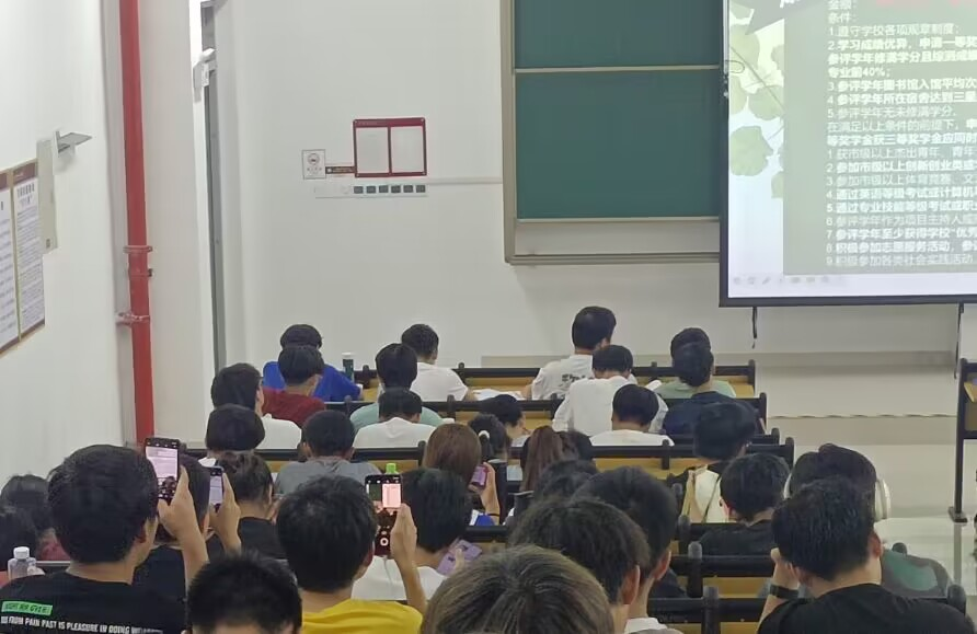 在场学生听得聚精会神,纷纷拿起手机或者笔将班会内容记录下来,此次主题班会达到预期效果。