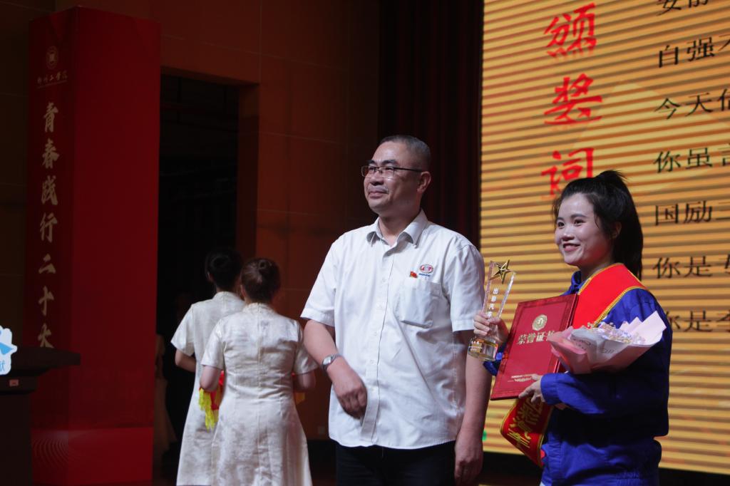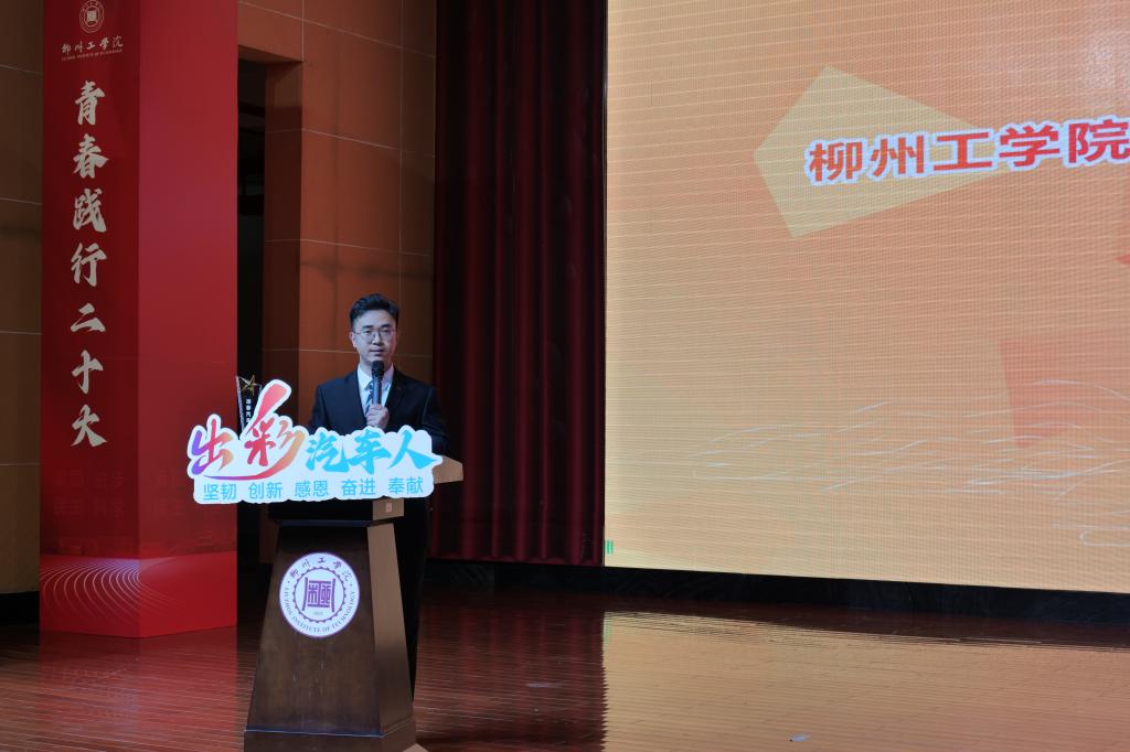 在播放了第二届出彩汽车人获奖者短片后,由获奖者李秉刚、李日莲作报告,现场嘉宾上汽通用五菱技术中心试验认证二支部书记、试制车间经理潘敏、开云kaiyun官方网站学生工作部副部长黄增辽对他们进行了颁奖。