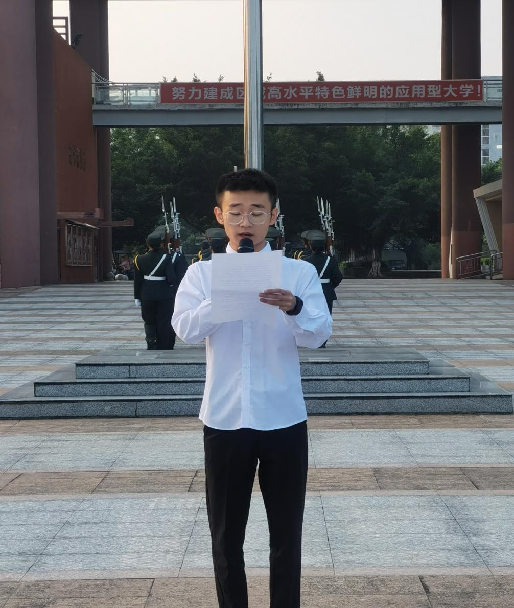 学院团委学生会执行主席梁睿作了题为《中秋情思,祖国昌盛》的主题发言。他谈到,中秋佳节,照亮的是中华民族独特的精神标识,寄托的是我们爱国恋家的家国情怀。新学期、新起点,让我们用脚步丈量祖国大地,用眼睛发现中国精神,用内心感应时代脉搏,以青春“小我”书写强国“大我”。在发言的最后,他祝福全院师生们中秋国庆双节快乐,万事如意。