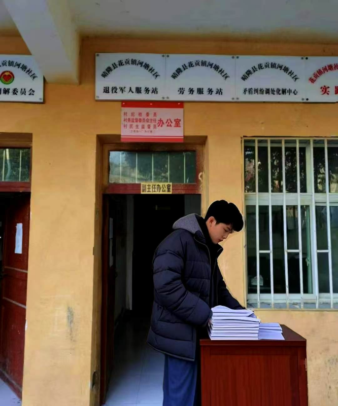 陆永安于2025年1月13日至2月13日在贵州省晴隆县花贡镇河塘社区居委会参加2025年大学生“返家乡”社会实践活动。在乡镇团委和村、社区团组织的统筹下,他被就近编入志愿者组织、青年突击队、新时代春晖社等组织,通过多渠道力所能及地参与基层治理日常工作。在这期间,他体验到奉献的快乐,结识到了很多有趣的朋友,也明白了责任的重要性。