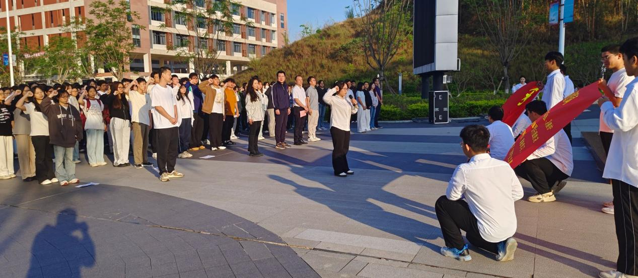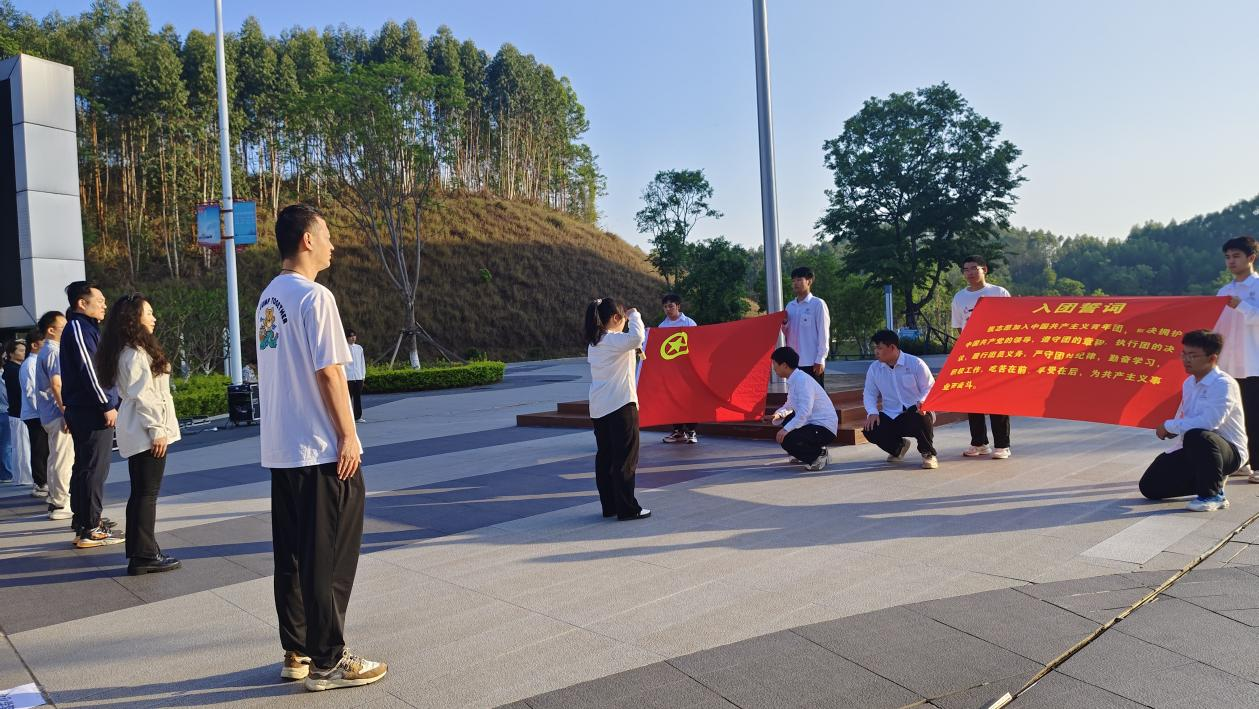 “我志愿加入中国共产主义青年团,坚决拥护中国共产党的领导……”在新能源241班伍小丹同学的领誓下,百名青年团员面向团旗,紧握右拳,重温入团誓词。铮铮誓言回荡在合一广场上空,彰显着青年学子坚定不移听党话、跟党走的信念与决心。