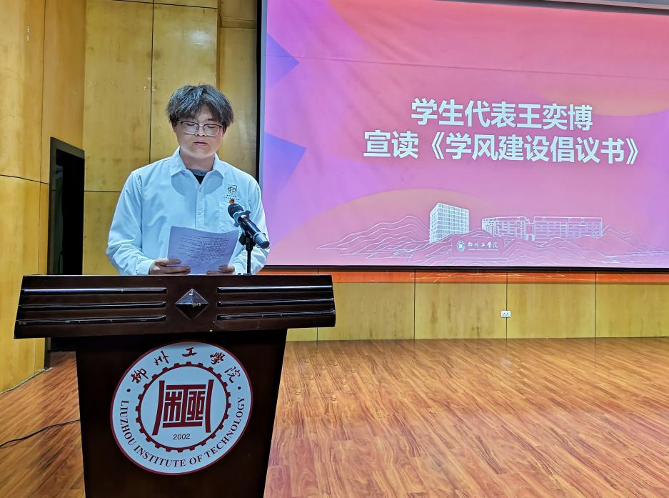 学生代表王奕博宣读了《学风建设倡议书》,号召全体同学严守课堂规范,提升学习效率;注重内外兼修,坚持德技并重;恪守学术诚信,践行实践创新;积极营造班级优良学风,发挥榜样引领作用。倡议铿锵有力,展现了汽车学子奋发向上的决心。