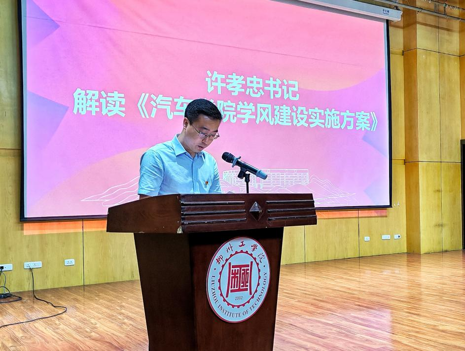 仪式在庄严的国歌声中拉开序幕。许孝忠书记对汽车工程学院2025年学风建设活动进行了详细解读。汽车工程学院2025年将通过“思想引领塑学风、精细管理严学风、专项建设引学风、榜样树立促学风、交流互鉴带学风、诚信教育正学风”六个维度协同发力,系统性推进我院学风建设工作。重点内容包括强化课堂纪律、开展专项提升、辅导员及班主任践行“一线工作法”、树立榜样典型等,旨在着力构建学风建设长效机制,为学院迎评和发展奠定坚实基础。