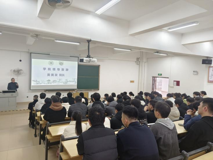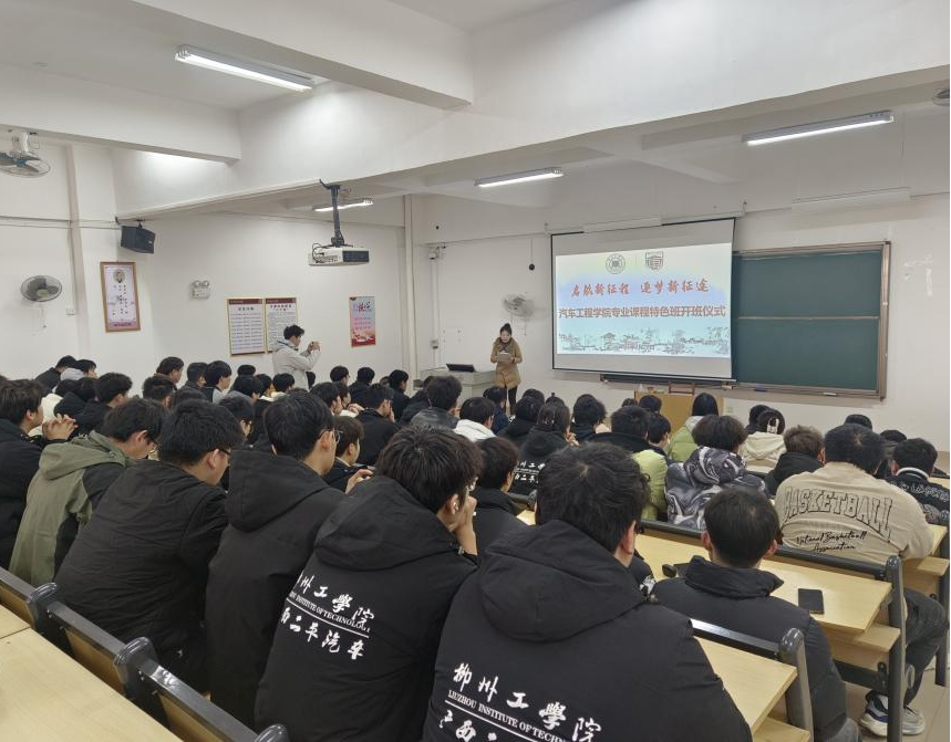 为切实做好汽车工程学院专业建设工作,2025年2月28日下午,汽车工程学院在南校区第二教学楼514教室举行专业课程特色班开班仪式。院长黄美发、副院长陈善球,院长助理何川、赵海敬,车辆工程专业负责人覃华桥、智能车辆工程专业负责人黄振之,教师代表余意、湛永列、谢雅琦及《汽车设计》《机械设计基础》课程特色班学生、东风柳汽新能源汽车技能大赛参赛选手参加本次活动。朱蕊老师主持本次活动。