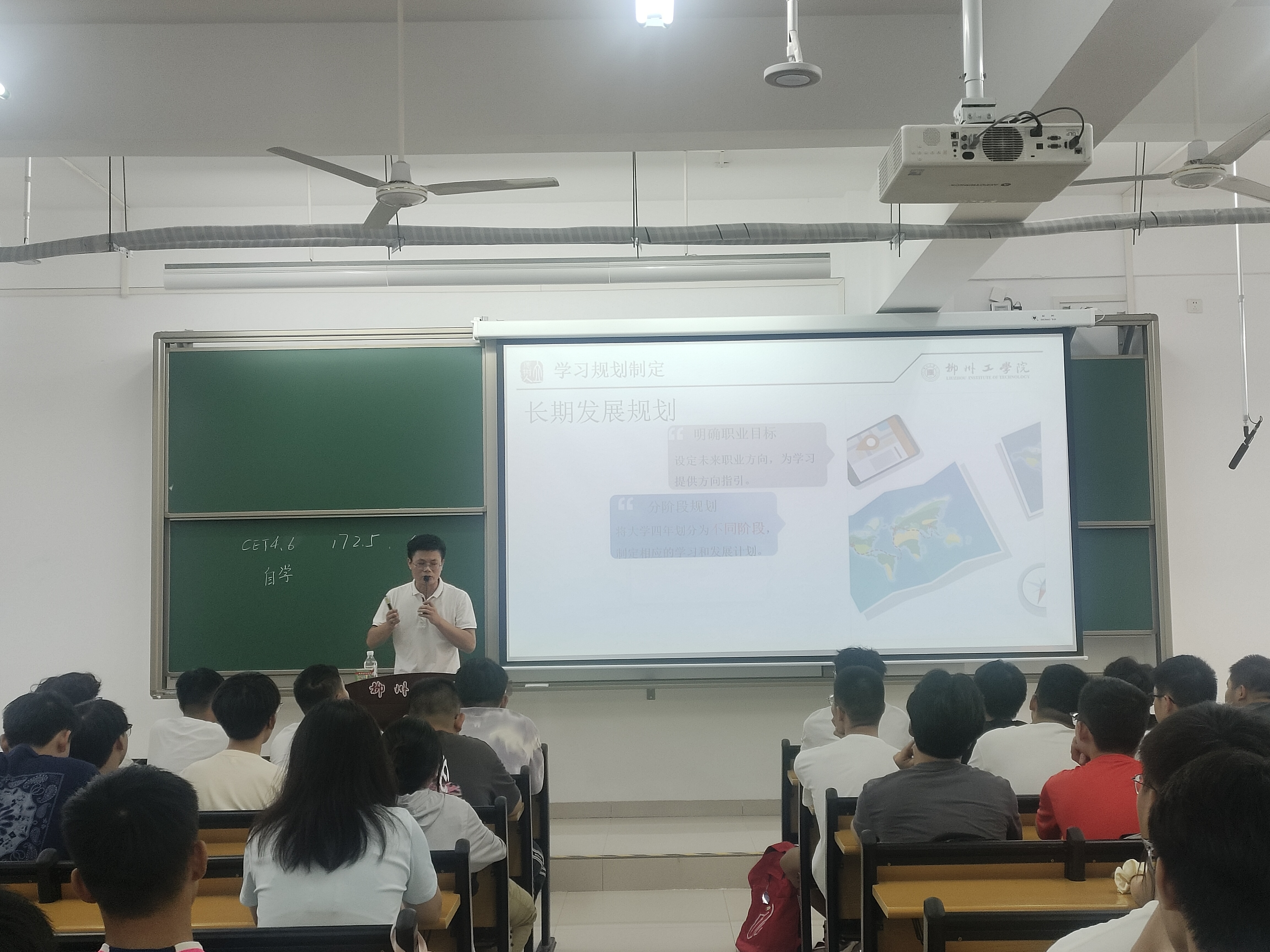 在学风建设动员会上,党总支书记张琨介绍了学校相关规定,强调了学风建设的重要性,鼓励新同学们积极投入新阶段的学习,尽快适应大学学习的方式和节奏,形成良好的班风学风。智能车辆工程教研室主任甘博,车辆工程专业负责人覃华桥,新能源汽车工程专业负责人赖凡三位老师分别面向三个专业的新同学系统地讲授了专业导论,帮助同学们对专业形成初步认知。心理健康教育讲座中,辅导员韦石华老师向同学们介绍了心理健康的重要性。她指出,应科学看待心理健康问题,以积极的态度应对情绪问题,必要时可向老师和专业人士寻求帮助。在资助政策宣讲和本科教学评估宣讲中,辅导员李敏芳老师介绍了奖助勤贷的相关政策和本科教学评估工作,鼓励同学们规划好大学生活,积极参与校园活动、支持学校工作。在校情校史教育讲座中,辅导员汪佳睿老师为同学们介绍了学校的历史和情况,帮助同学们对学校形成更好地了解。