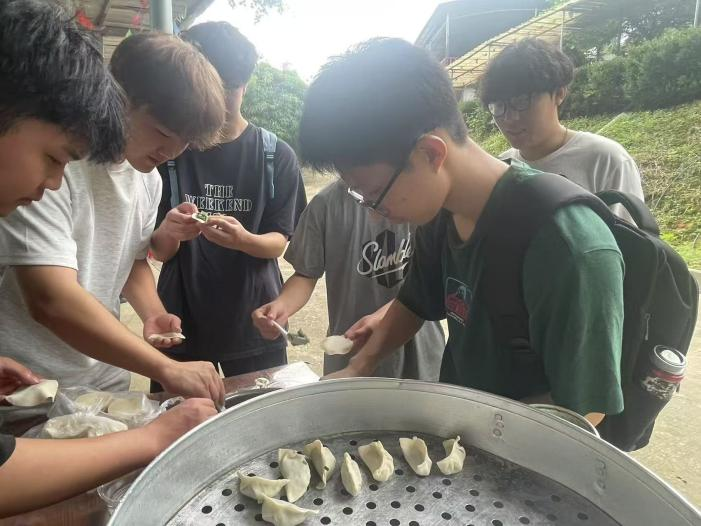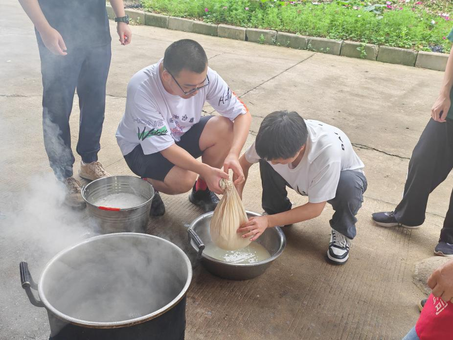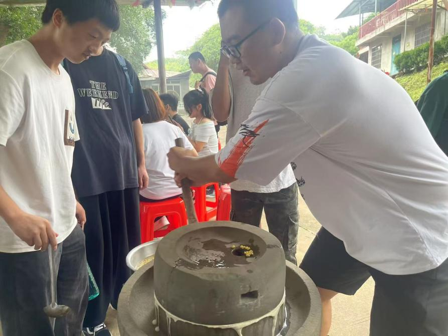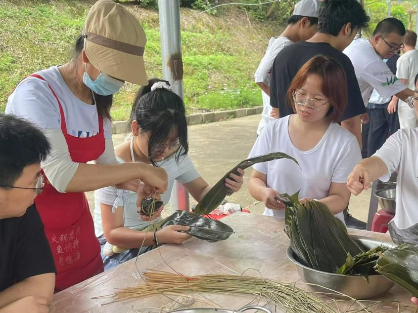 学员们分组体验了磨豆浆、包饺子、包粽子等传统美食的制作过程。在石磨旁,豆香弥漫,学员们轮番上阵,亲手研磨黄豆,深刻体会“慢工出细活”的匠人精神;“一折一裹,粽叶成舟”,在老师的悉心指导下,学员们认真学习了包裹糯米与馅料的技巧,掌握绑带的要领。