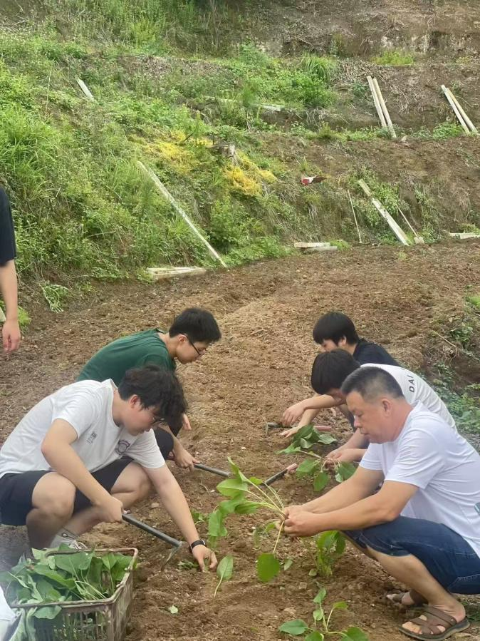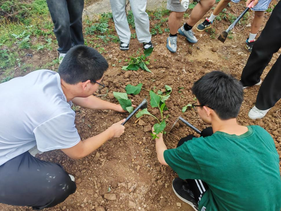 在田地中,学员们化身“现代农夫”,挥锄翻土、播种育苗,参与中草药(蛋白菊)种植。绿意盎然的田垄间,学员们不仅掌握了松土、施肥、浇定根水等农耕技能,更在躬身劳作中体会到“一粥一饭当思来之不易”的深刻内涵。