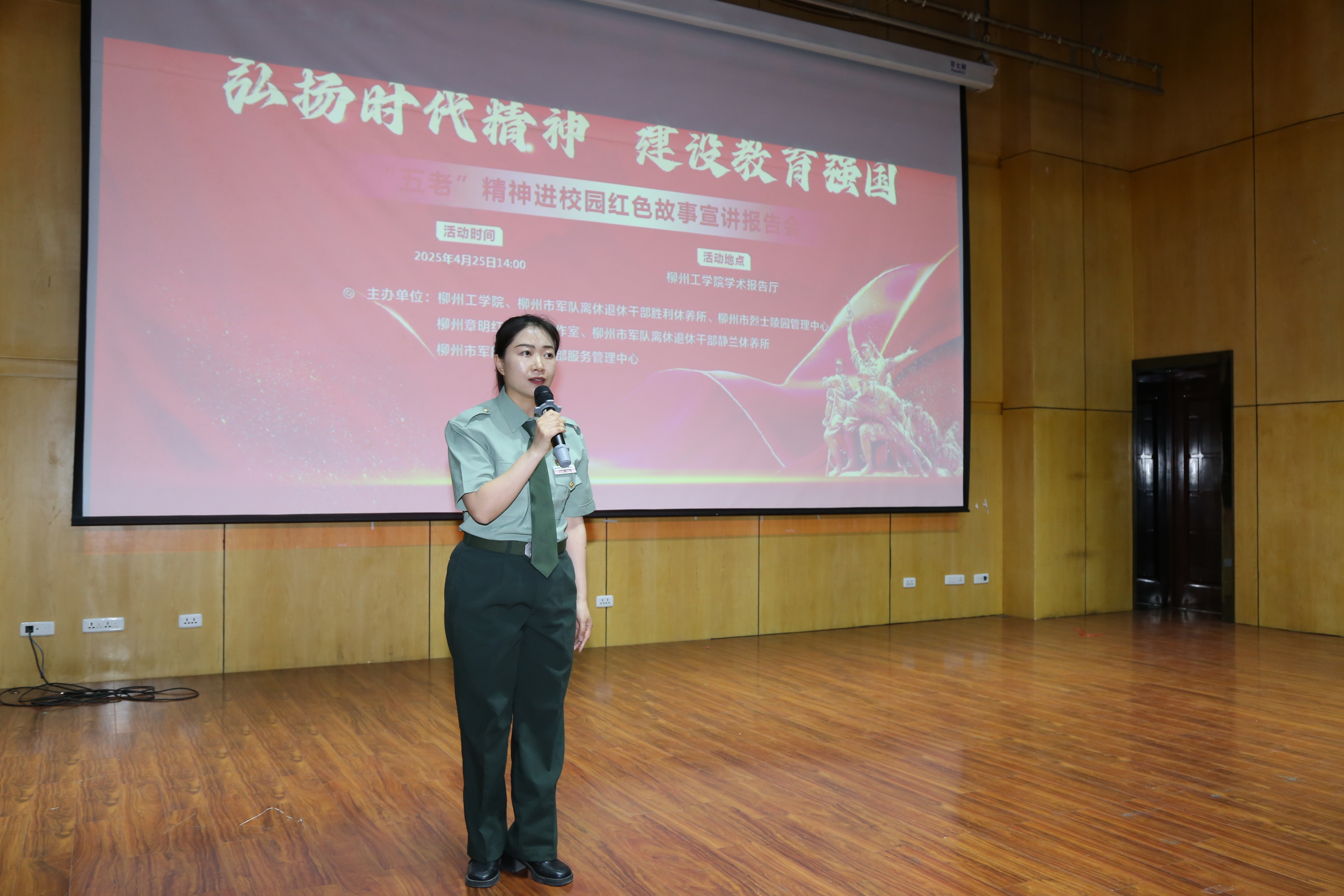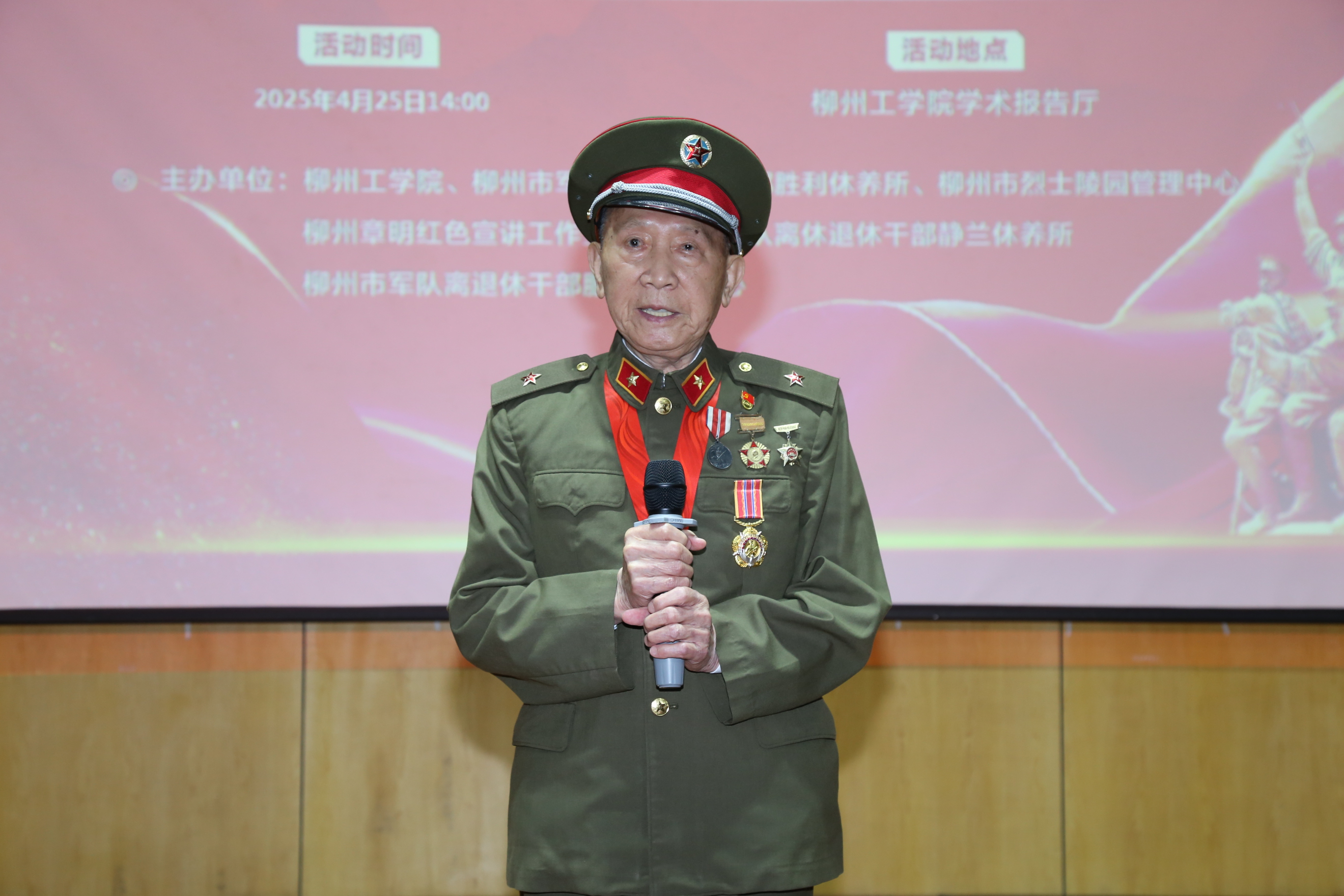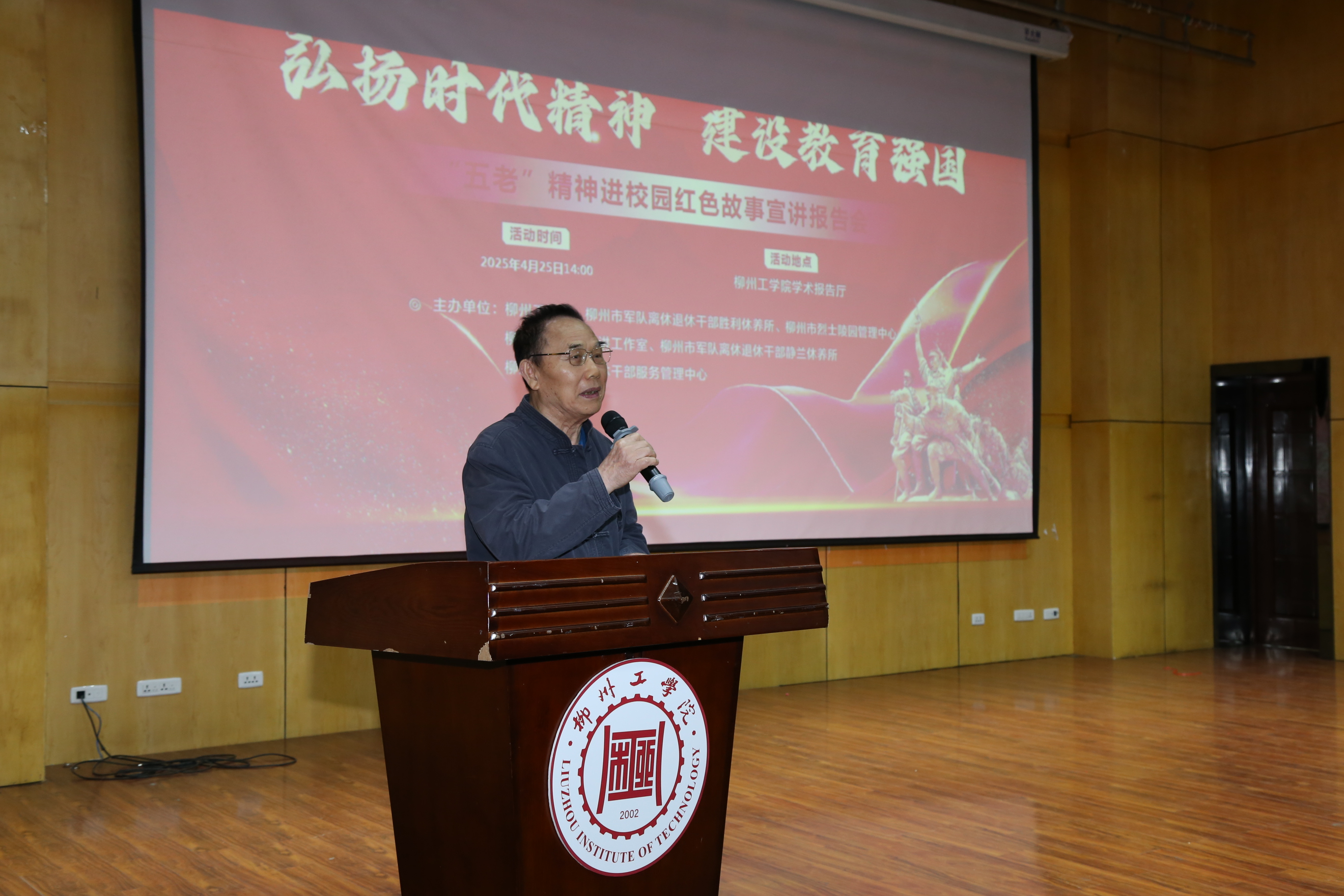 为深入贯彻“读懂中国”活动精神,筑牢青年学生思想根基,弘扬“五老”精神,4月25日,开云kaiyun官方网站联合柳州市军队离休退休干部胜利休养所、柳州章明红色宣讲工作室、柳州市军队离休退休干部静兰休养所等单位,在学术报告厅举办“读懂中国”系列活动暨“五老”精神进校园红色故事宣讲会。近300名青年学子齐聚一堂,共同聆听跨越时空的红色回响,开启了一场历时90分钟的精神洗礼之旅。