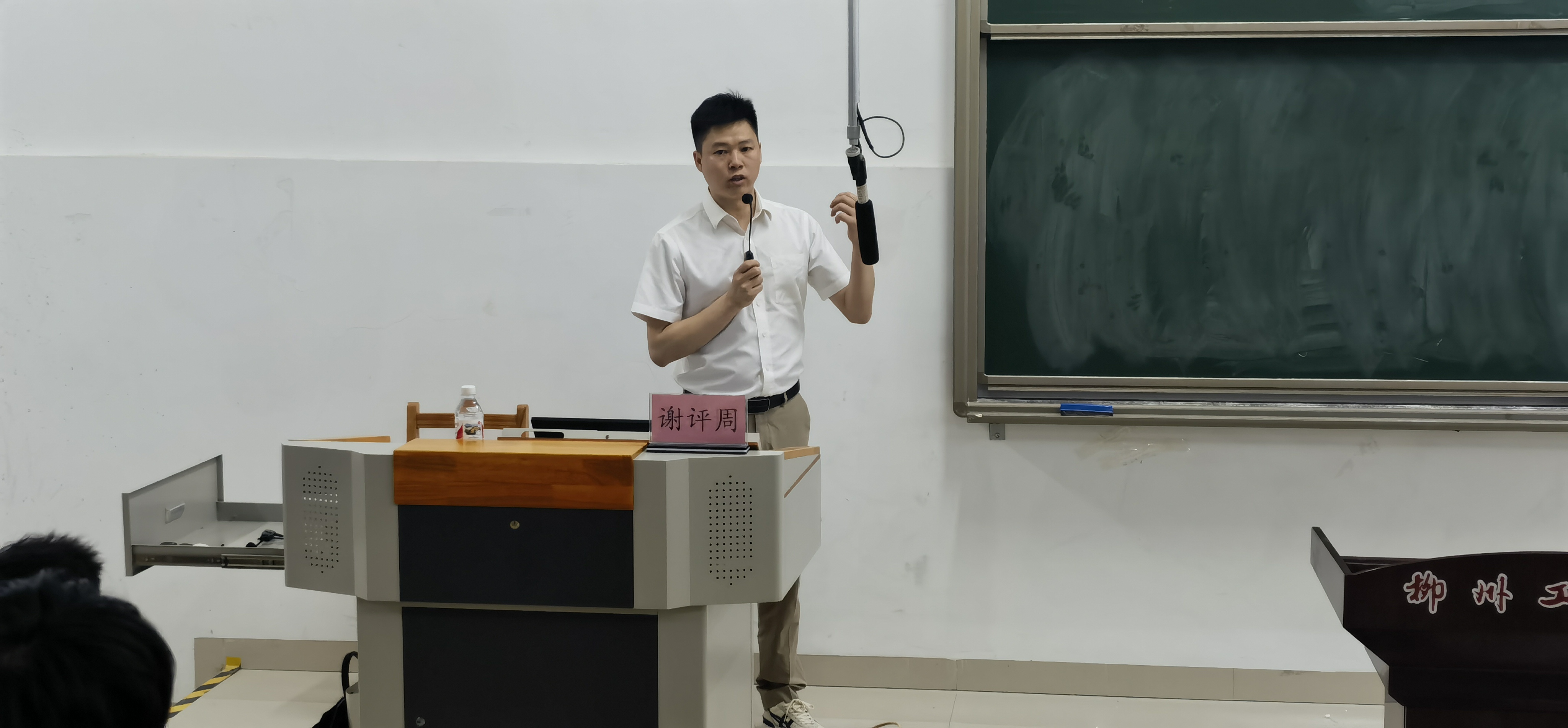 谢评周现任广西汽车集团有限公司特聘专家、高级技师,曾获国务院特殊津贴、全国向上向善好青年等荣誉。讲座中,他回顾了自己从一名普通钳工成长为国家级技能人才的历程。