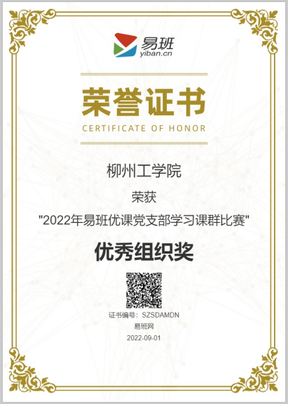 2022年9月,荣获2022年易班优课党支部学习课群比赛“优秀组织奖”;