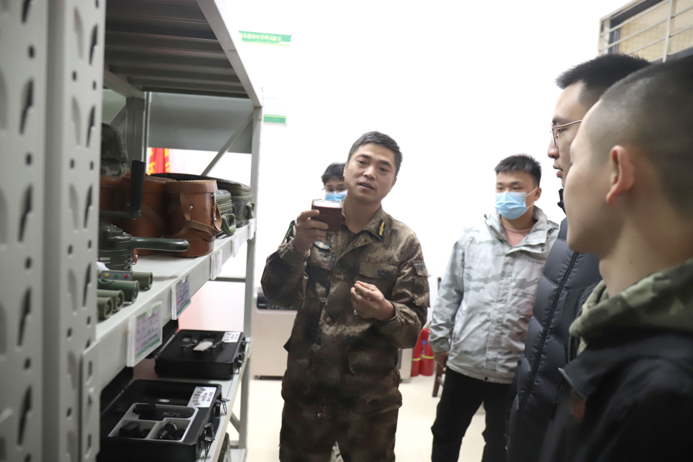 之后,师生参观了战备器材库,同学们对于各种通用、维稳、指挥器材表现出浓厚的兴趣,仔细聆听武装部干事的讲解。