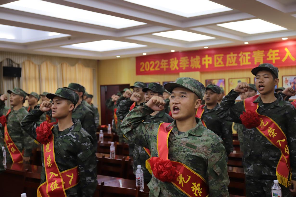 五位入伍新兵代表依次发言,表达了从军的热情与决心,表示到部队后将努力践行新时代强军目标,努力学习军事技术,尽快成长为一名合格军人;学生代表谢增荣带领全体应征入伍的同学表决心,保证到部队后一定会刻苦训练,努力学习;遵守纪律,服从领导;团结同志,把“吃苦在前,甘愿奉献”的思想牢牢扎根,决不辜负祖国和人民的期望。
