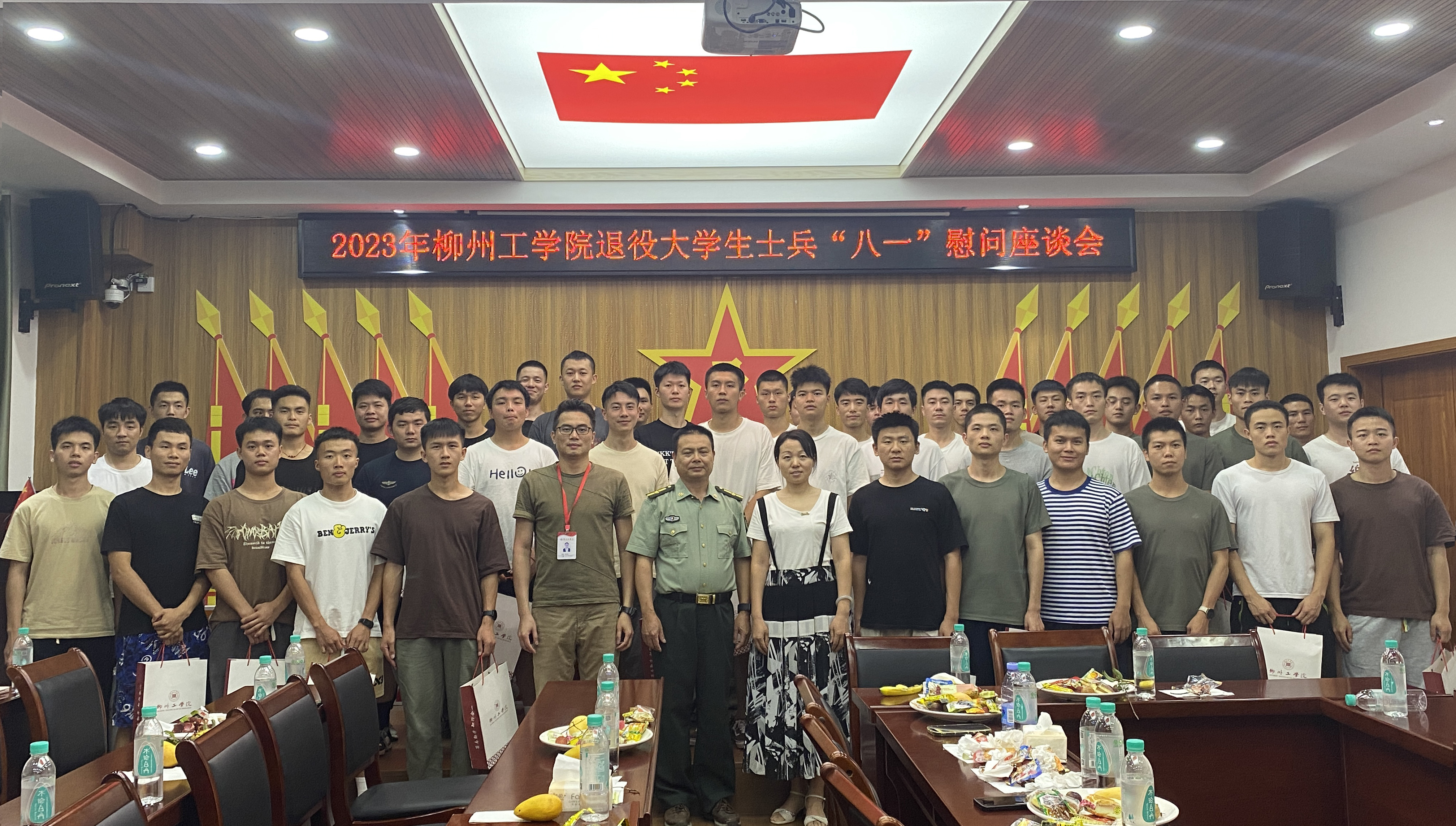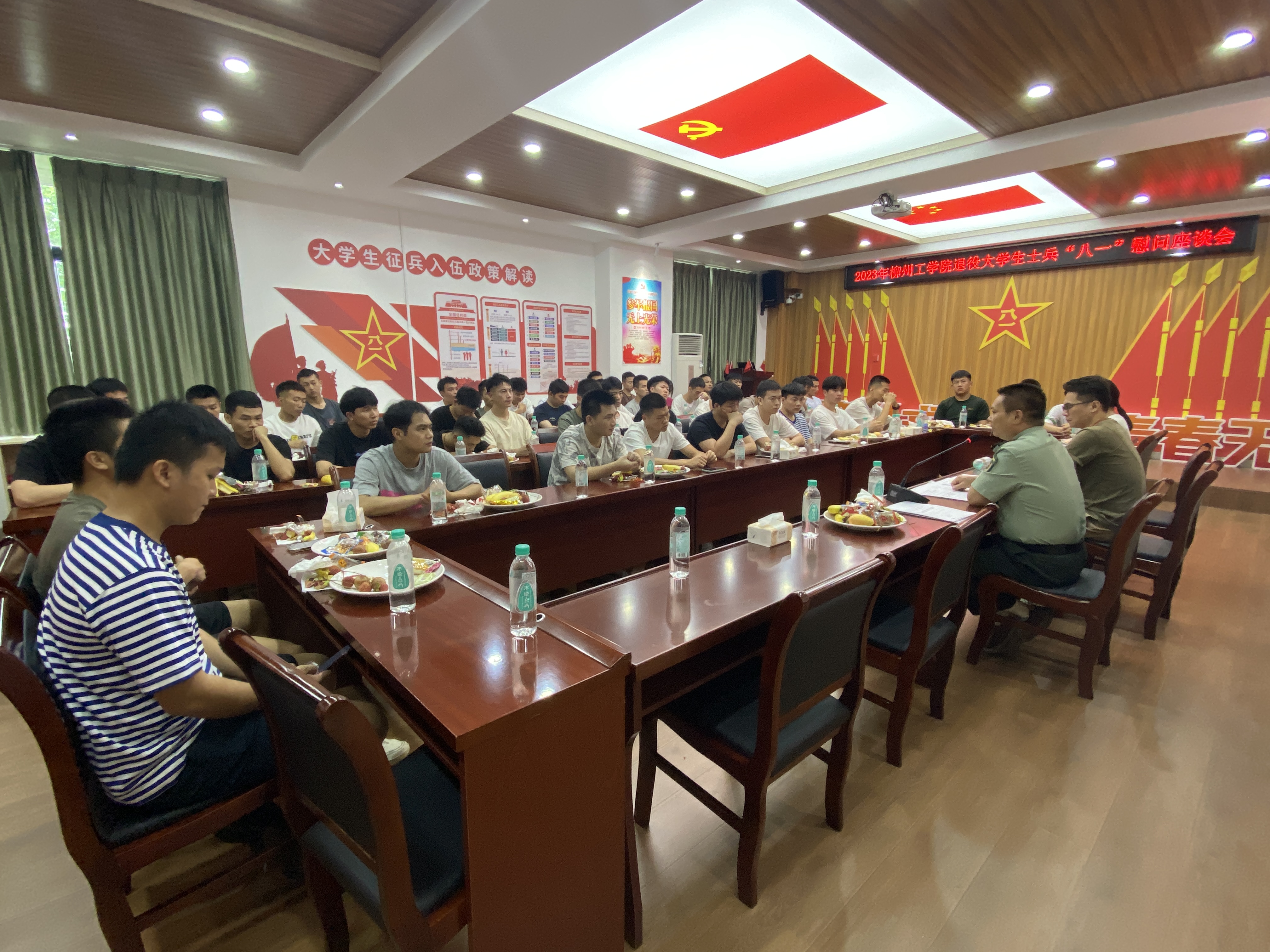 为庆祝中国人民解放军建军96周年,进一步弘扬拥军优属的光荣传统,表达对退役复学学生的关怀和问候,7月1日下午,开云在征兵工作站举行2023年退役复学学生“八一”建军节慰问座谈会。共53名退役复学学生代表参加了会议,会议由人民武装部副部长李明主持。