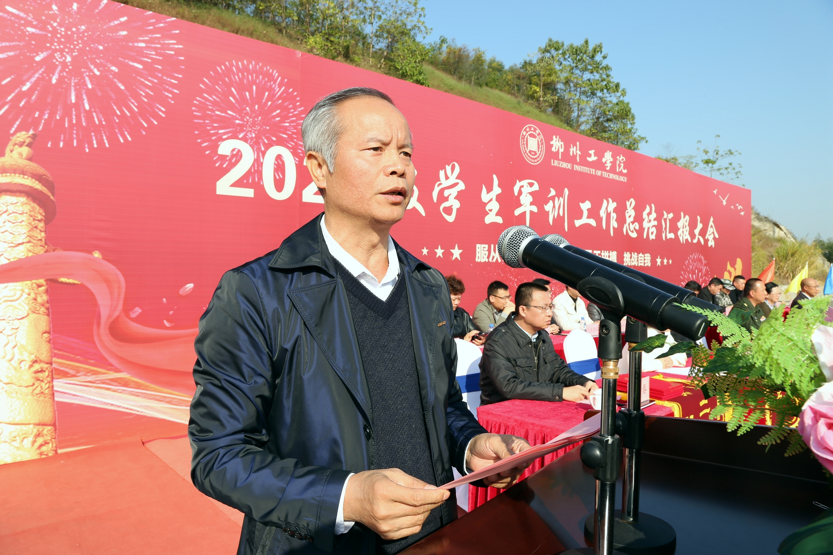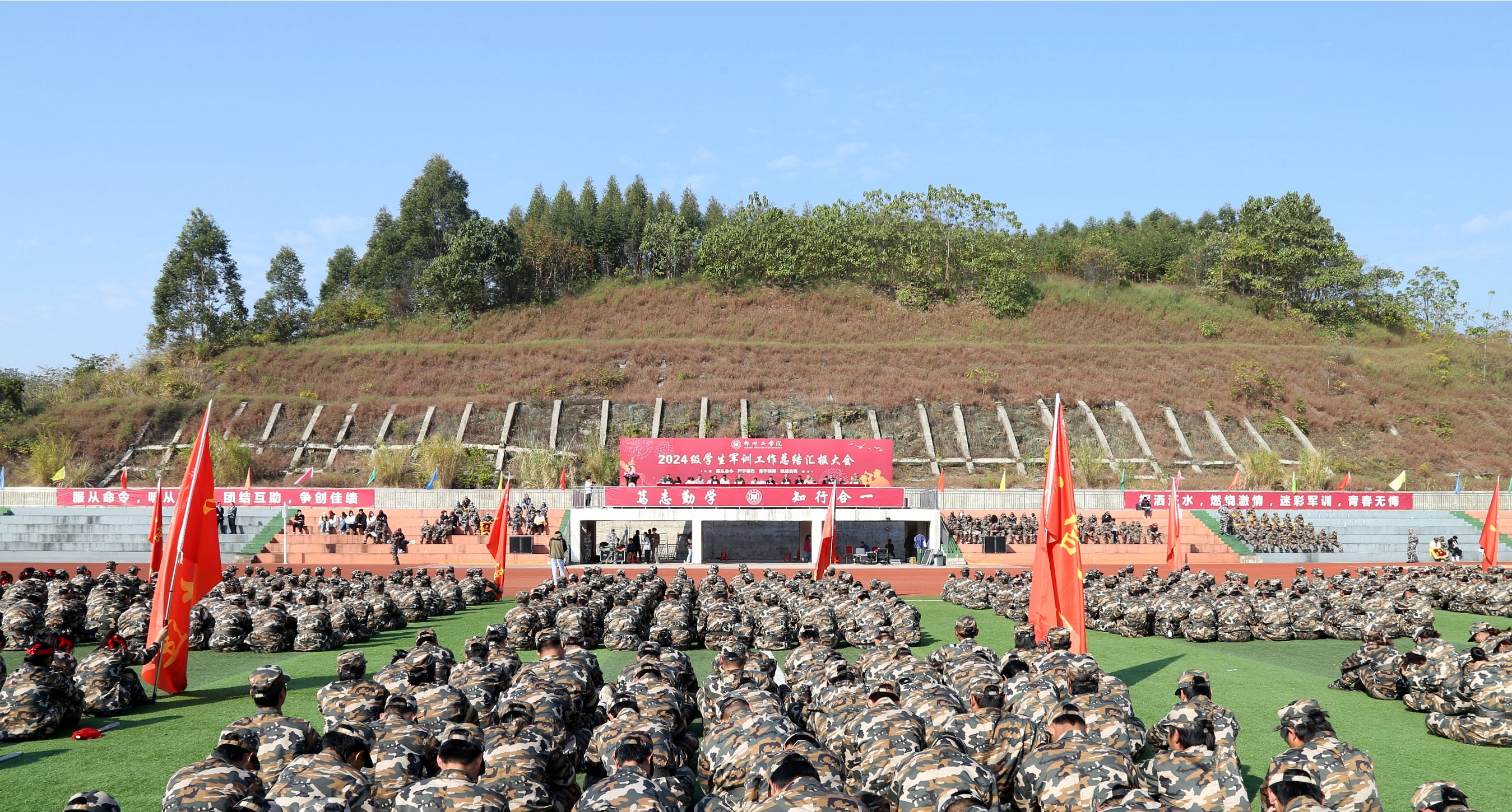 12月1日,开云kaiyun官方网站2024级学生军训工作总结汇报大会在北校区田径场举行。学校校长刘军,党委书记、政府督导专员付和艺,柳州军分区杨祖坚,副校长范存礼、副校长林峰、纪委书记王锦雄、副校长梁开庆、校长助理黄哲春出席活动,学校相关职能部门负责人、各二级学院党总支书记、全体教官、学生工作人员及2024级学生参加本次大会。