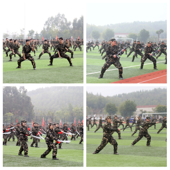 随后,军训成果汇报表演拉开帷幕。8个受阅方阵以严整的军容军姿,依次走过主席台前接受领导嘉宾与师生的检阅。军体拳表演、枪阵表演、大刀表演、棍术表演、模拟实战演习等军事汇演项目轮番上场,精彩纷呈,展示了同学们在军训中所取得的丰硕成果。