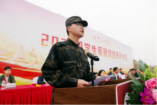 来自三营一连、机械工程学院机械221班胡洲同学代表优秀学员上台发言。