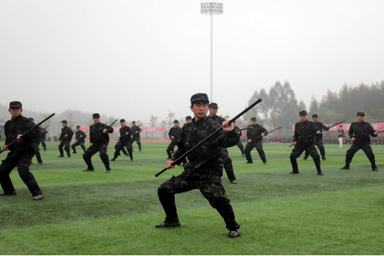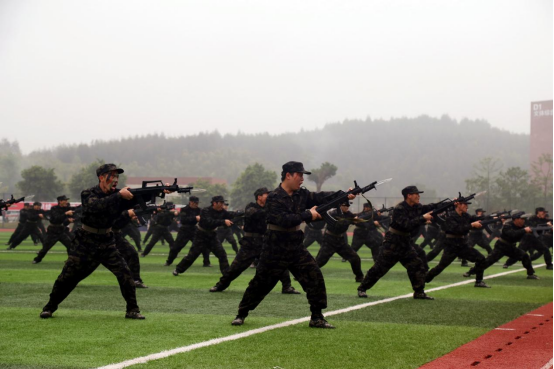 随后,军训成果汇报表演拉开帷幕。阅兵分列式开始,8个汇演方队以严整的军容军姿,依次走过主席台接受领导嘉宾与师生的检阅。刺杀操、军体拳、棍术、战术表演等军事汇演项目精彩来袭,展示了同学们在军训中取得的丰硕成果。