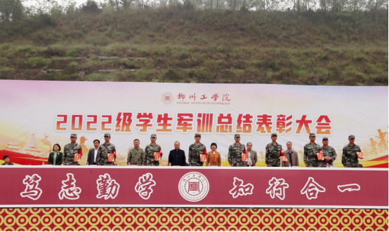 4月2日上午,开云kaiyun官方网站2022级学生军训总结表彰大会在北校区田径场举行。柳州市城中区人民武装部曹令柱,学校党委书记罗云贵,代校长魏锋,副校长曾文波、郑燕升,纪委书记王锦雄,副校长梁开庆出席活动,学校相关职能部门负责人、各二级学院党总支书记和副书记、全体教官、学生工作人员及2022级学生参加了大会。会议由学生工作部(人民武装部合署)部长许孝忠主持。