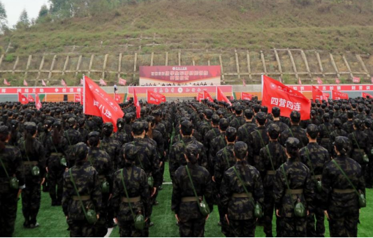 仪式上,全体参训师生身着戎装,列队整齐,在雄壮激昂的国歌声中,精神抖擞,蓄势待发。