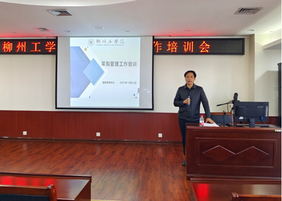 招标采购中心李珂副主任首先就修订后《柳州工学采购管理办法》的内容进行了解读,并着重围绕采购项目立项、采购流程、合同签订、履约验收等重要环节进行了介绍,并对采购管理中常见的疑难问题和与会同志进行了沟通交流。