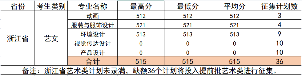 开云2021年浙江省艺术类第一次投档完成,出档4人,各专业出档分数如下:
