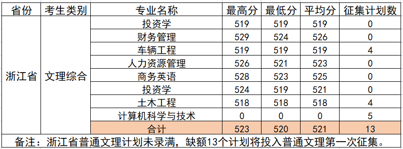 2021年浙江省普通文理第一次投档完成,出档27人,各专业出档分数如下: