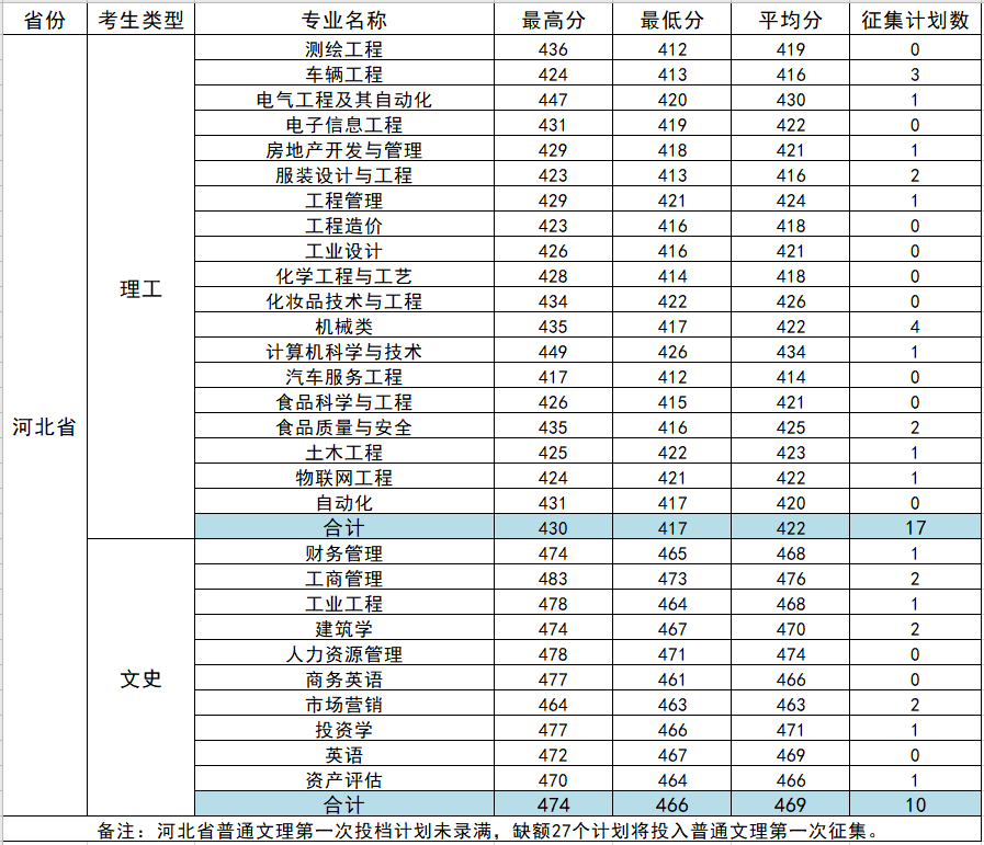 2021年河北省普通文理第一次投档完成,出档160人,各专业出档分数如下: