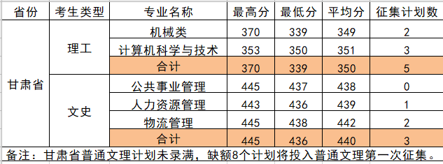 2021年甘肃省普通文理第一次投档完成,出档20人,各专业出档分数如下: